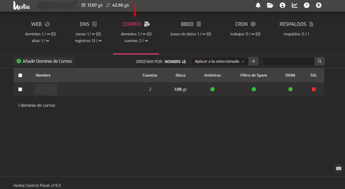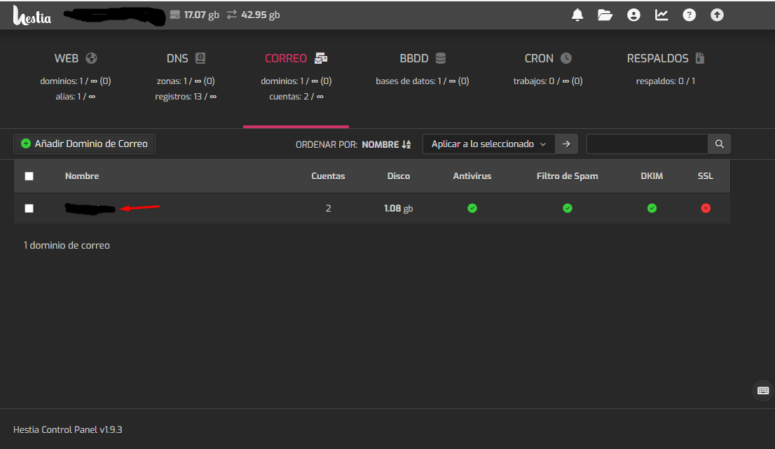 3. Selecciona el dominio en el cual quieres crear el correo electrónico